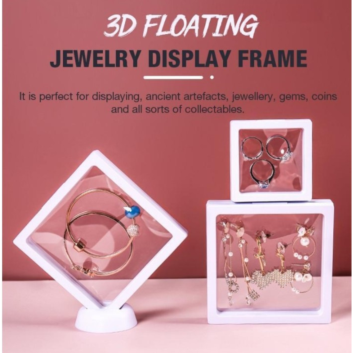 Мембранна Футляр-рамка для монет і медалей із підставкою. 3D-вітрина 10х10 см (біла).