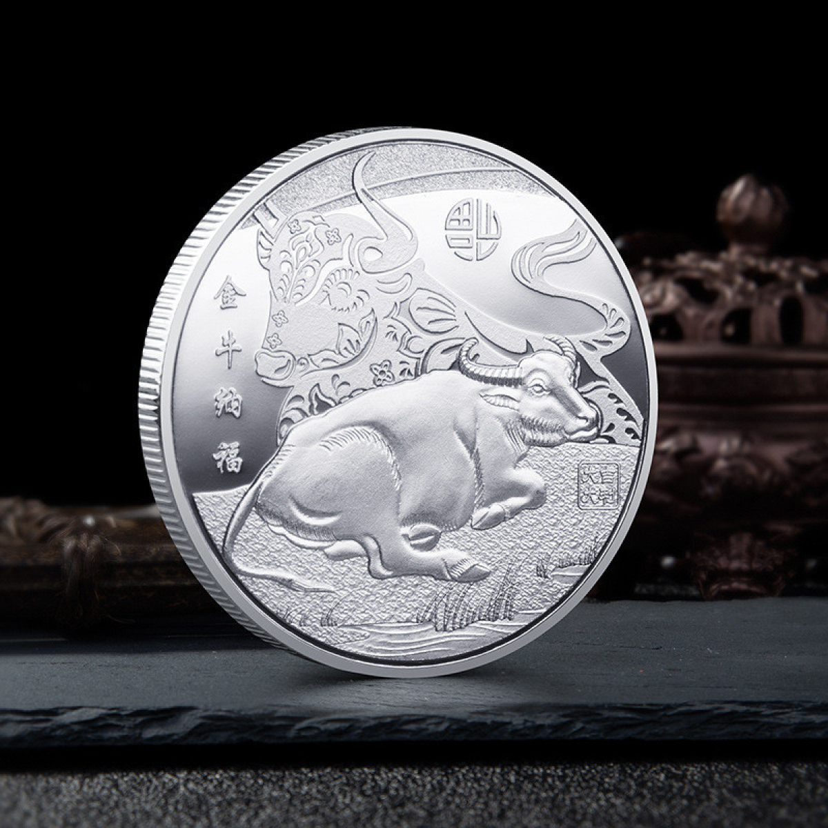Сувенірна Китайська пам“ятна монета 2021 року, колекційні монети «Год Бик» Сільвер