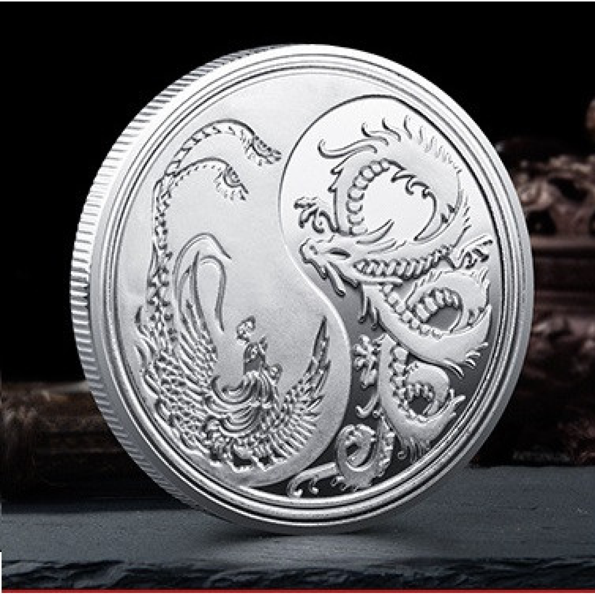 Сувенірна монета “ Дракон і фенікс Інь і янь“ пам“ятні монети. сильвер