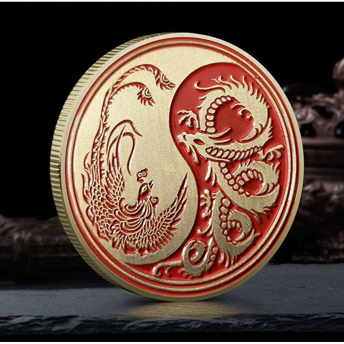 Сувенірна монета “ Дракон і фенікс Інь і янь“ пам“ятні монети. бронза