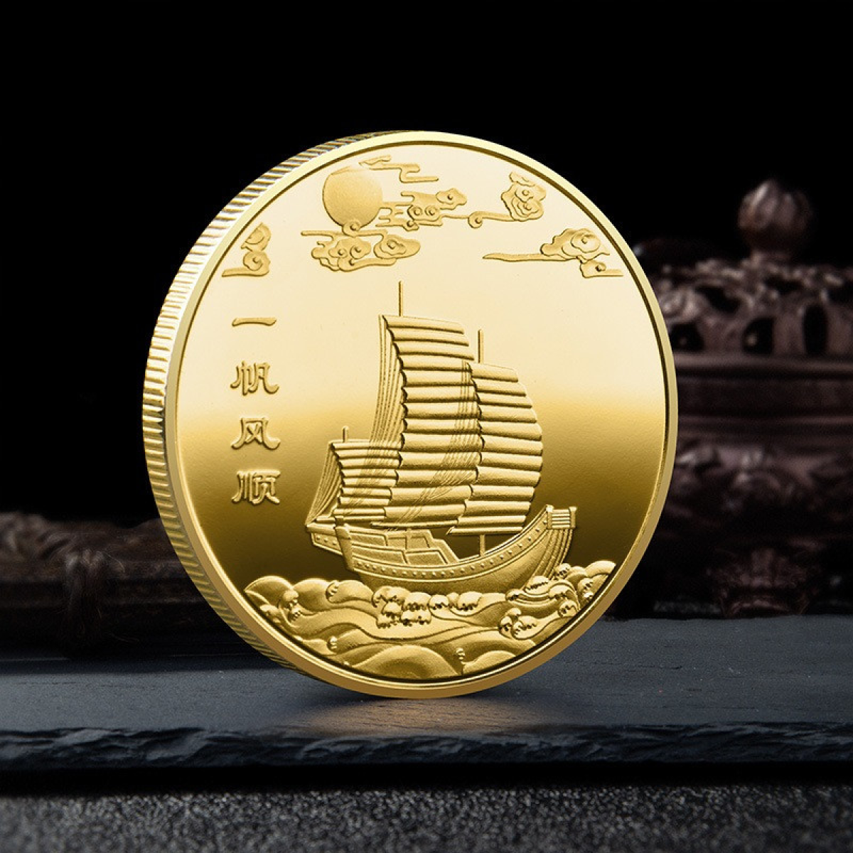 Пам“ятна сприятлива монета “Лодка Джонка “. голд, монета удачі в плаванні