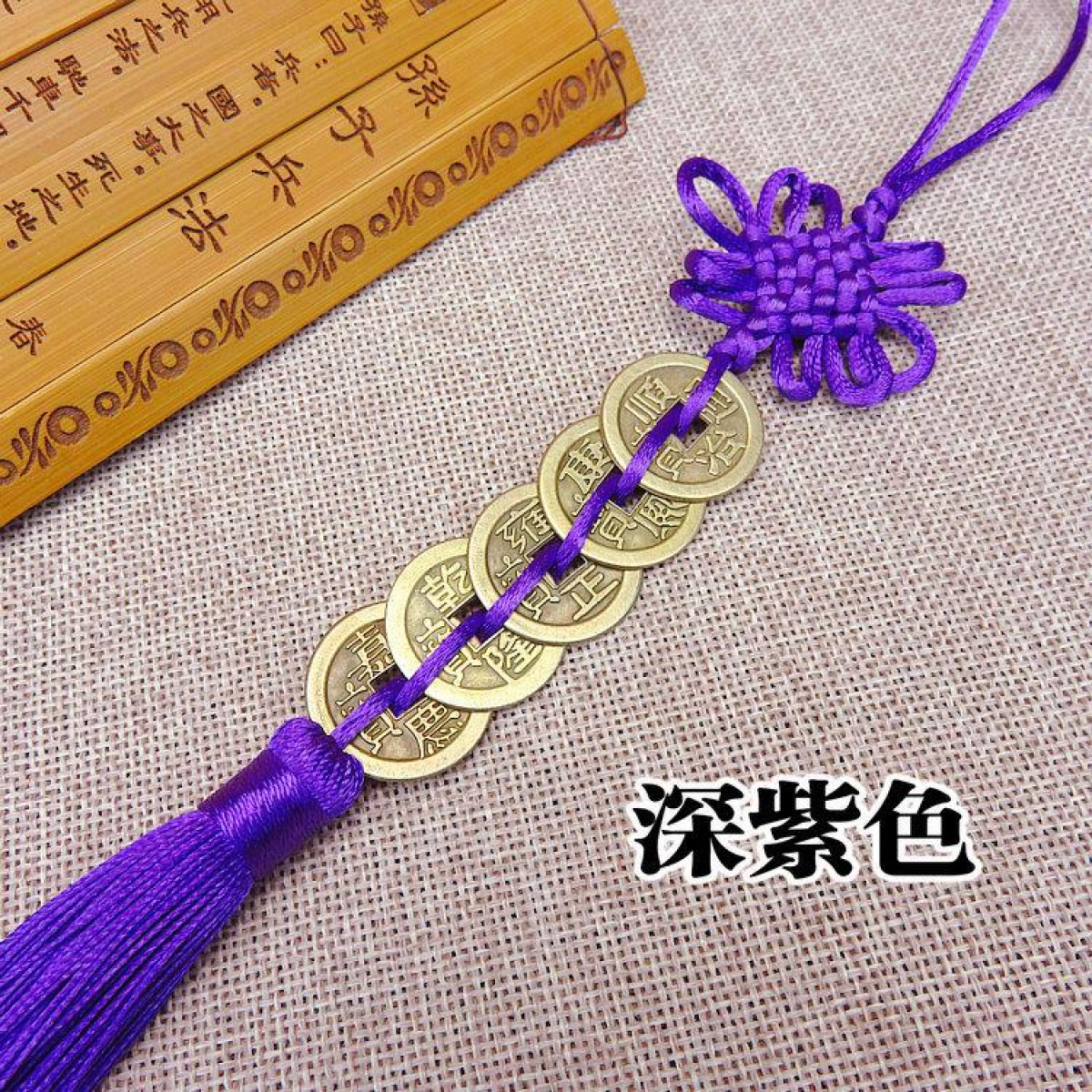 Китайський вузол фен-шуй, підвіски на удачу, старовинні мідні монети, талісман, захист процвітання, фіолетовий