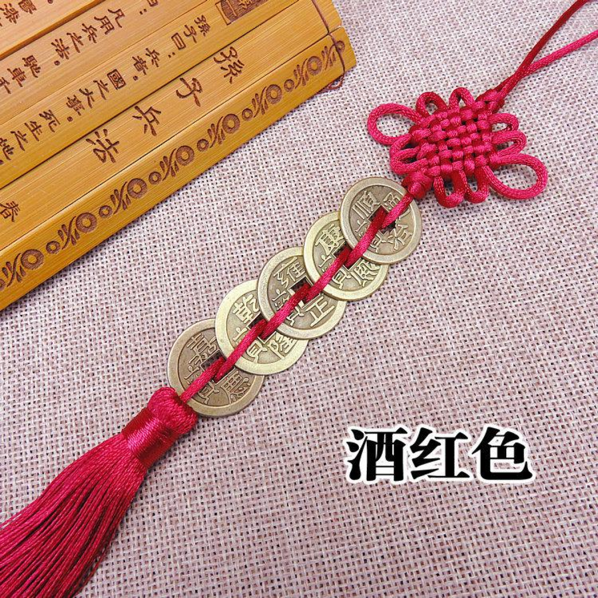 Китайський вузол фен-шуй, підвіски на удачу, старовинні мідні монети, талісман, захист процвітання, бордовий