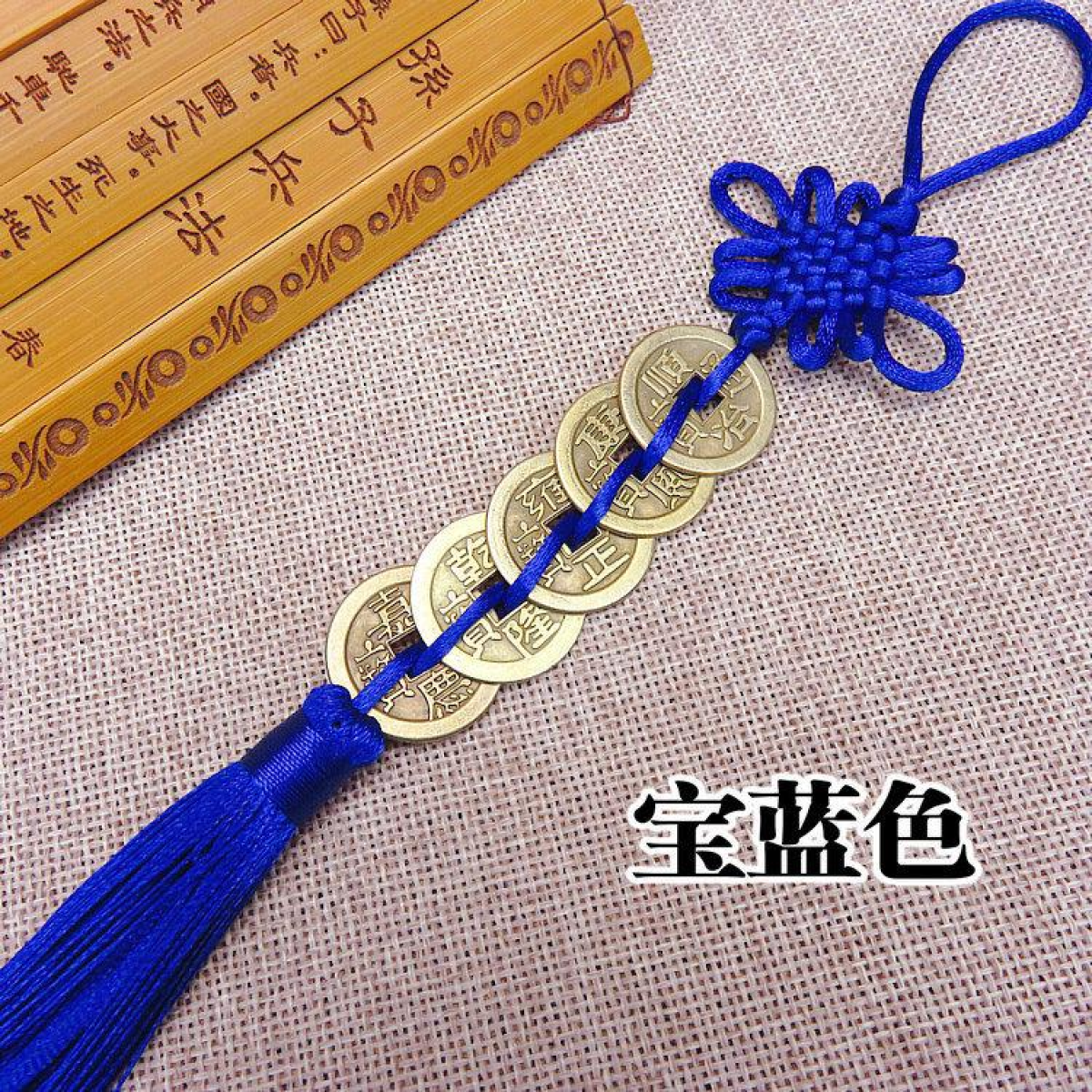 Китайський вузол фен-шуй, підвіски на удачу, старовинні мідні монети, талісман, захист процвітання, синя нитка