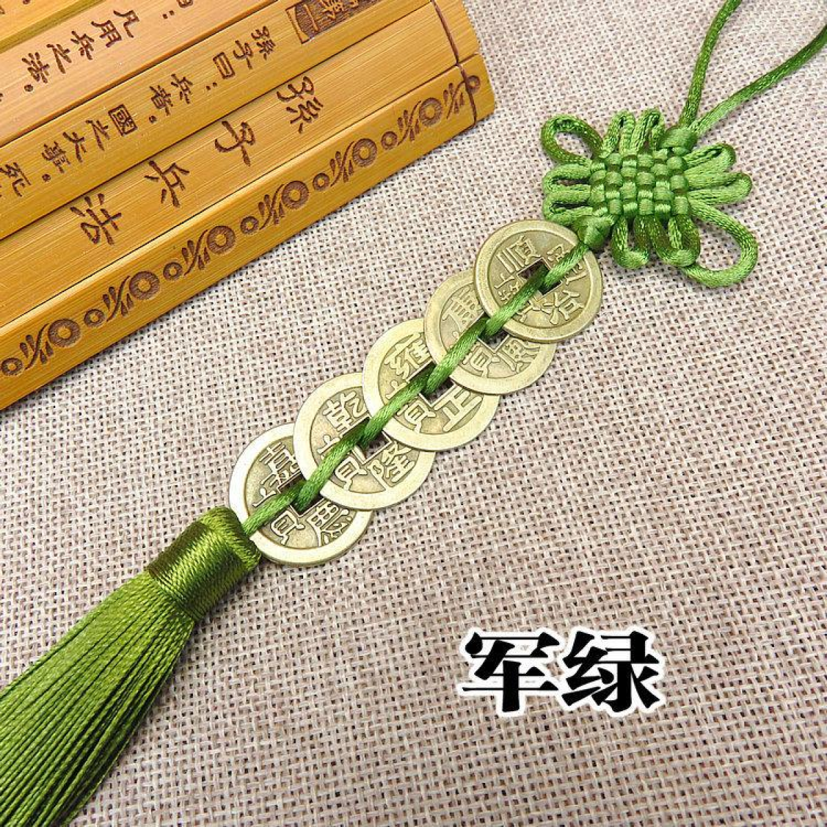 Китайський вузол фен-шуй, підвіски на удачу, старовинні мідні монети, талісман, захист процвітання, хакі нитка