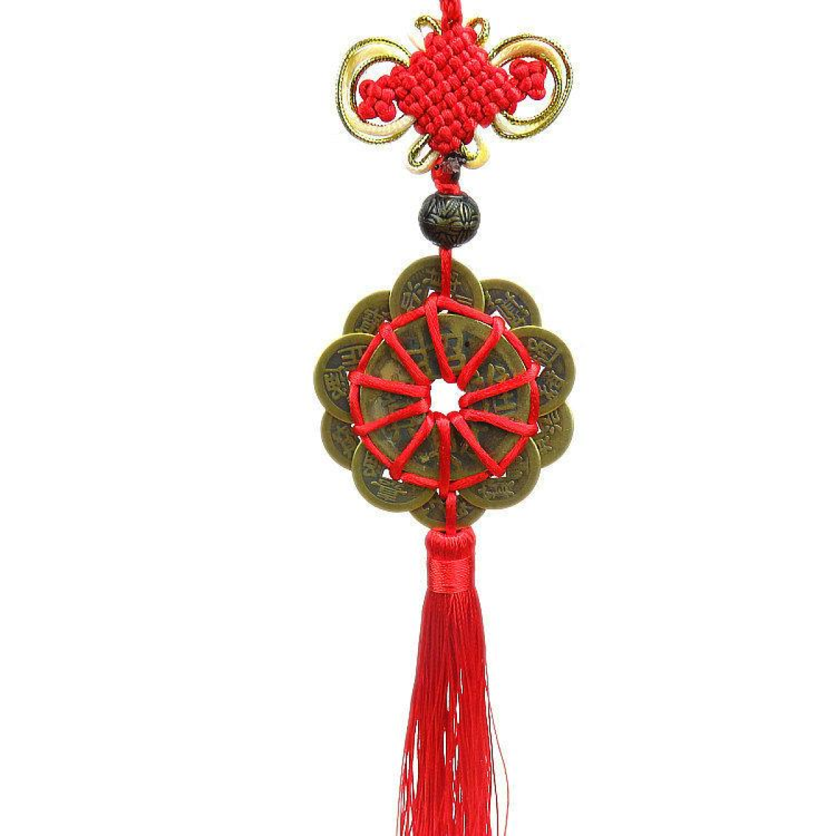 Зв“язка з десяти монет із вузликом (червона нитка) для багатства та успіху