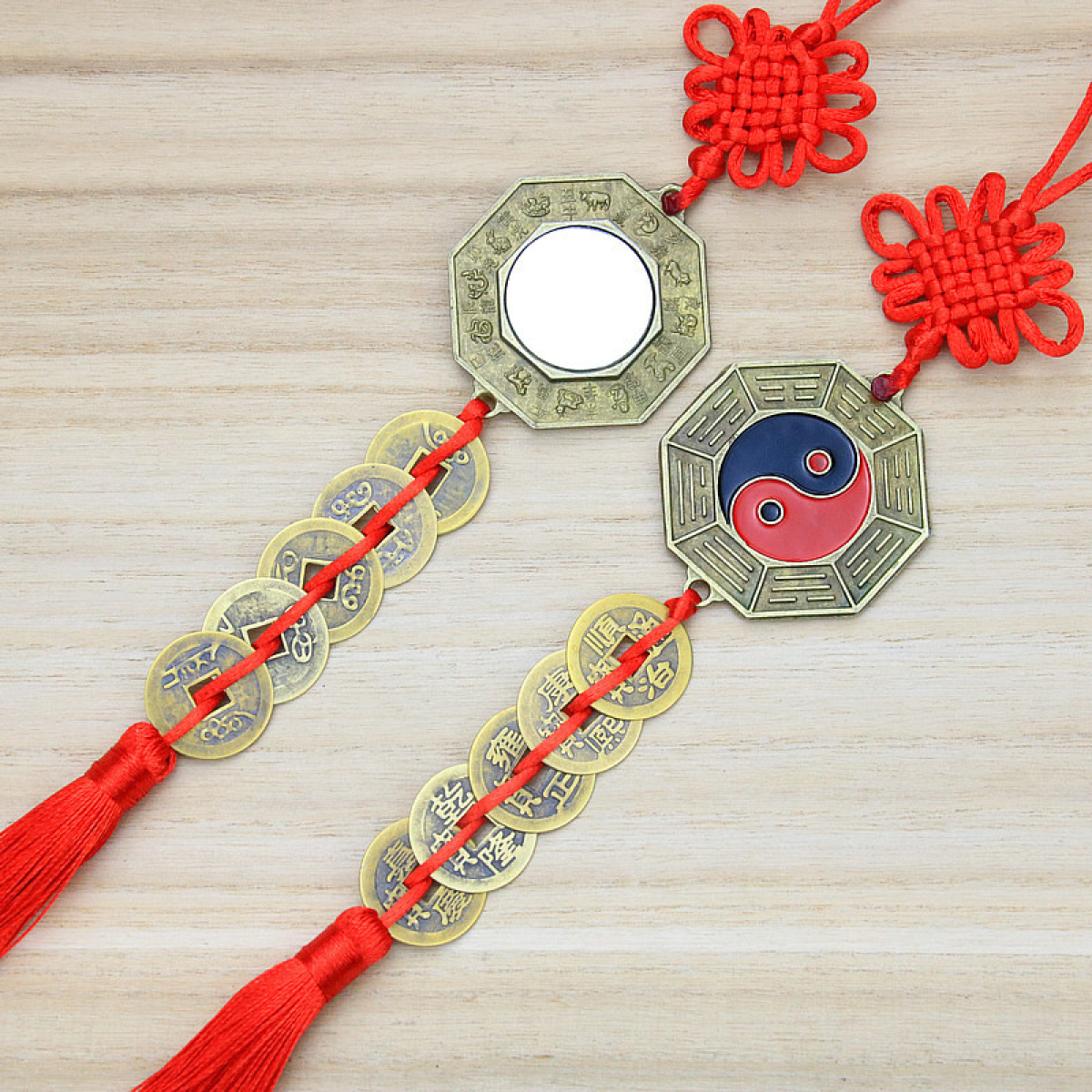Китайський вузол із дзеркалом фен-шуй, підвіски на удачу, старовинні мідні монети, талісман, захист процвітання