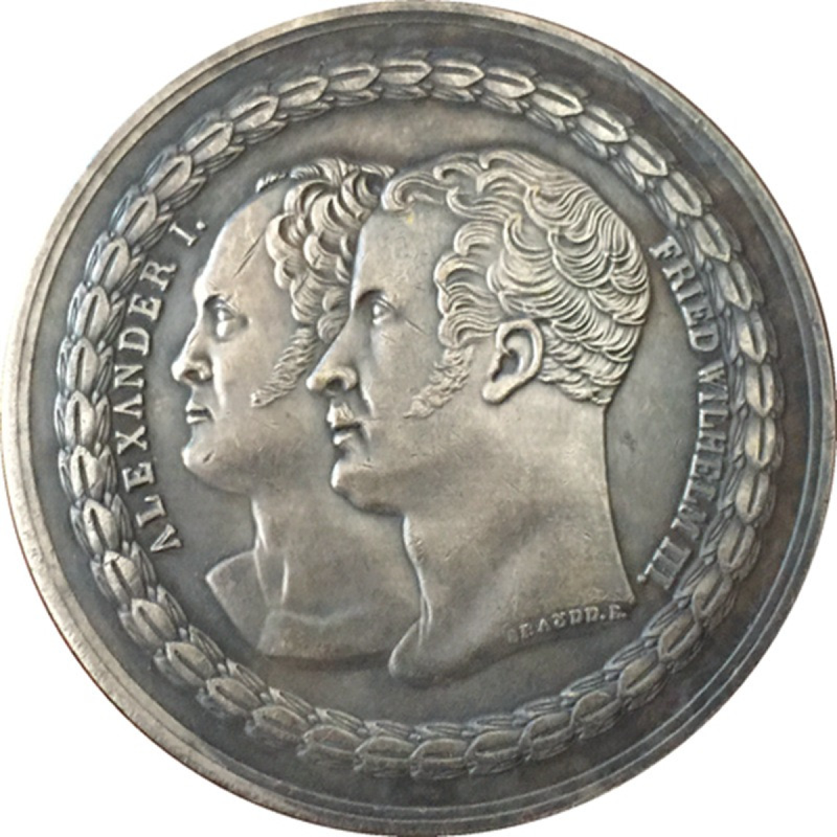 Сувенir Медаль 1818 р. Пінстрах Хрест III Прусський і Олександр I Російський, на закладці пам“ятника перемоги