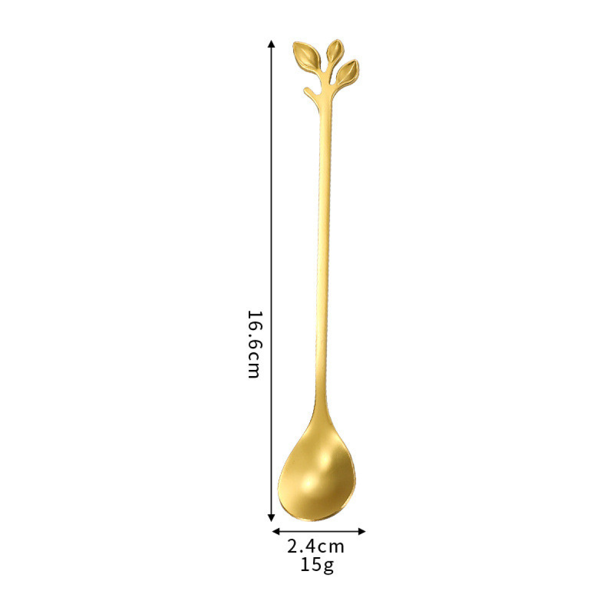 Креативна високоякісна десертна ложка Листочки Голд із неіржавкої сталі 16 см