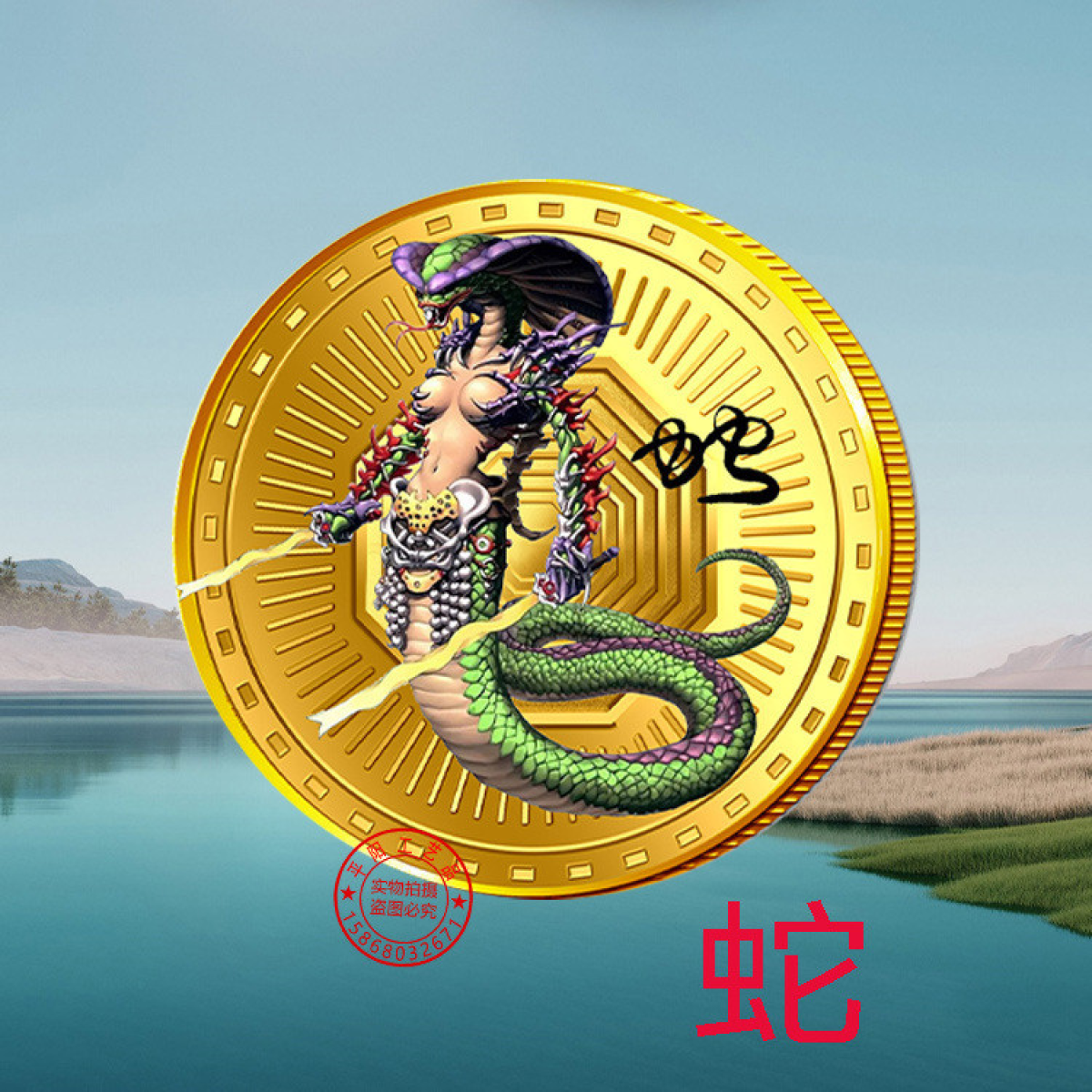Сувенір монета знак Зодіака “ Змія“ стиль Японське аніме. 40*1.5мм Голд (лунний календар)
