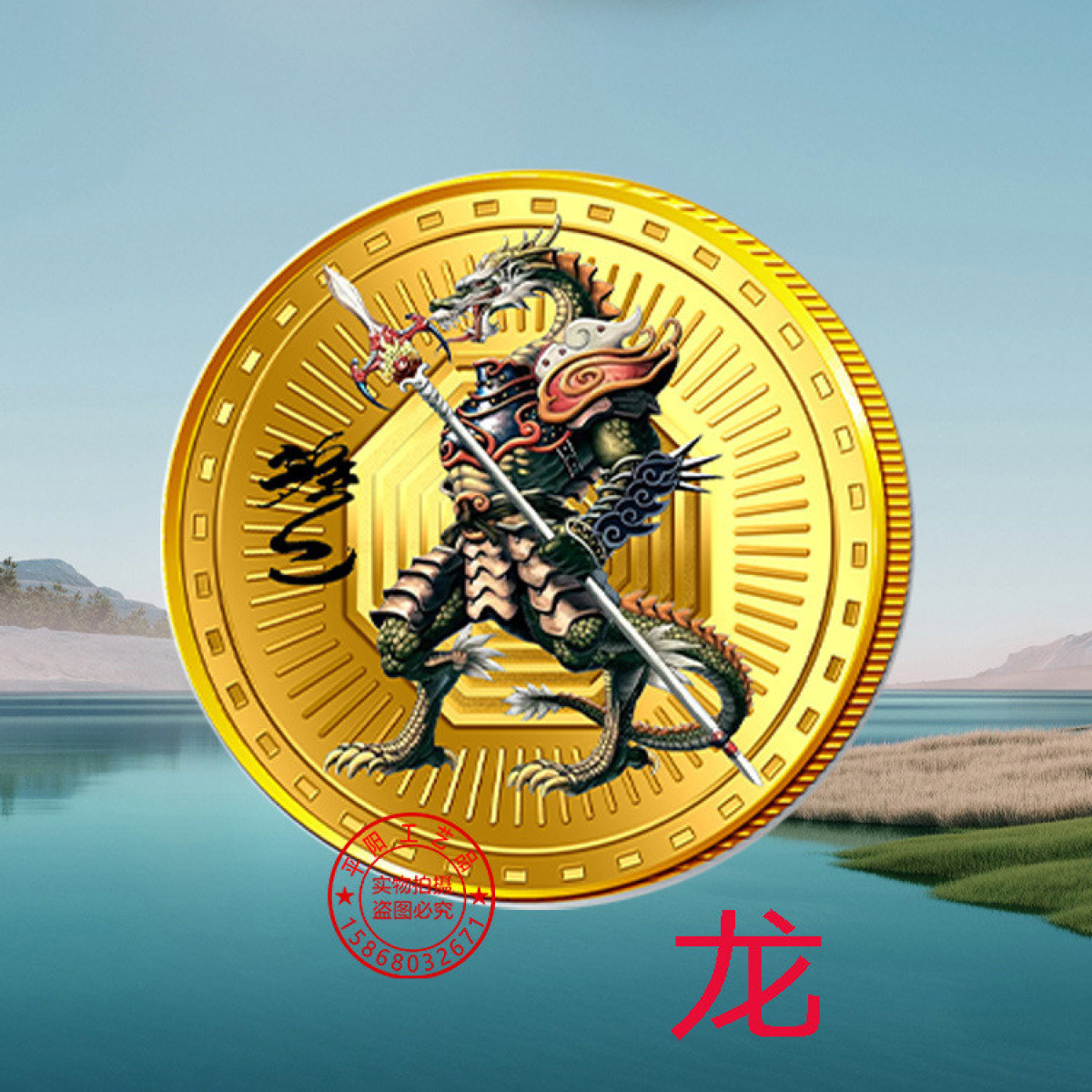 Сувенір монета знак Зодіака “ Дракон“ стиль Японське аніме. 40*1.5мм Голд (лунний календар)