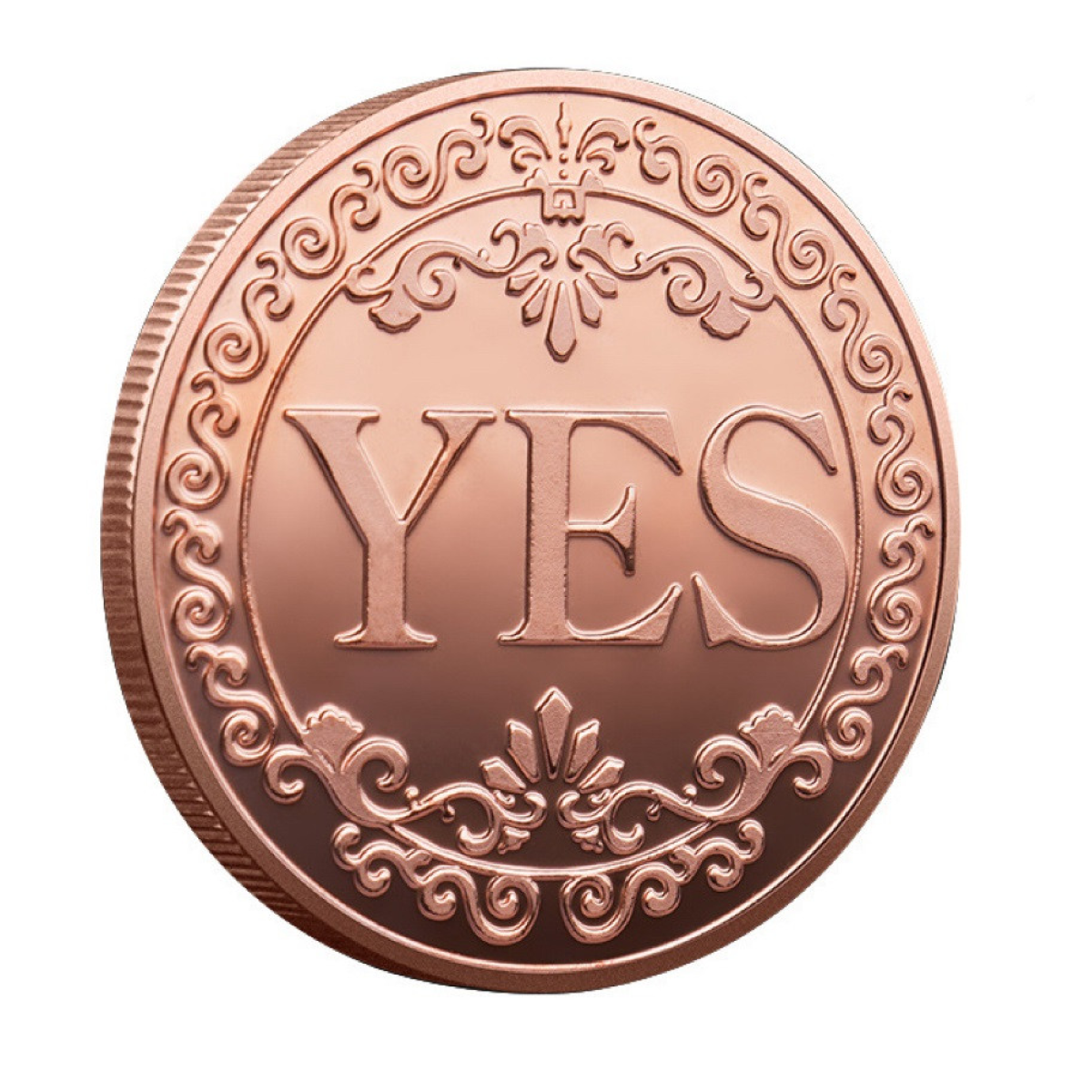 Металева монетка зі сторонами «так/ні» миттєво розв“яже будь-які суперечки й дасть однозначну відповідь на питання, що цікавить. Такий сувенір універсальний і дасть змогу проявити увагу до подруге 8 Марта, к другу на Новий рік або 23 лютого вічно сумнівається і хватку парню. Гарний дизайн монети містить об“ємний квітковий візерунок і опуклі написи сторін.
