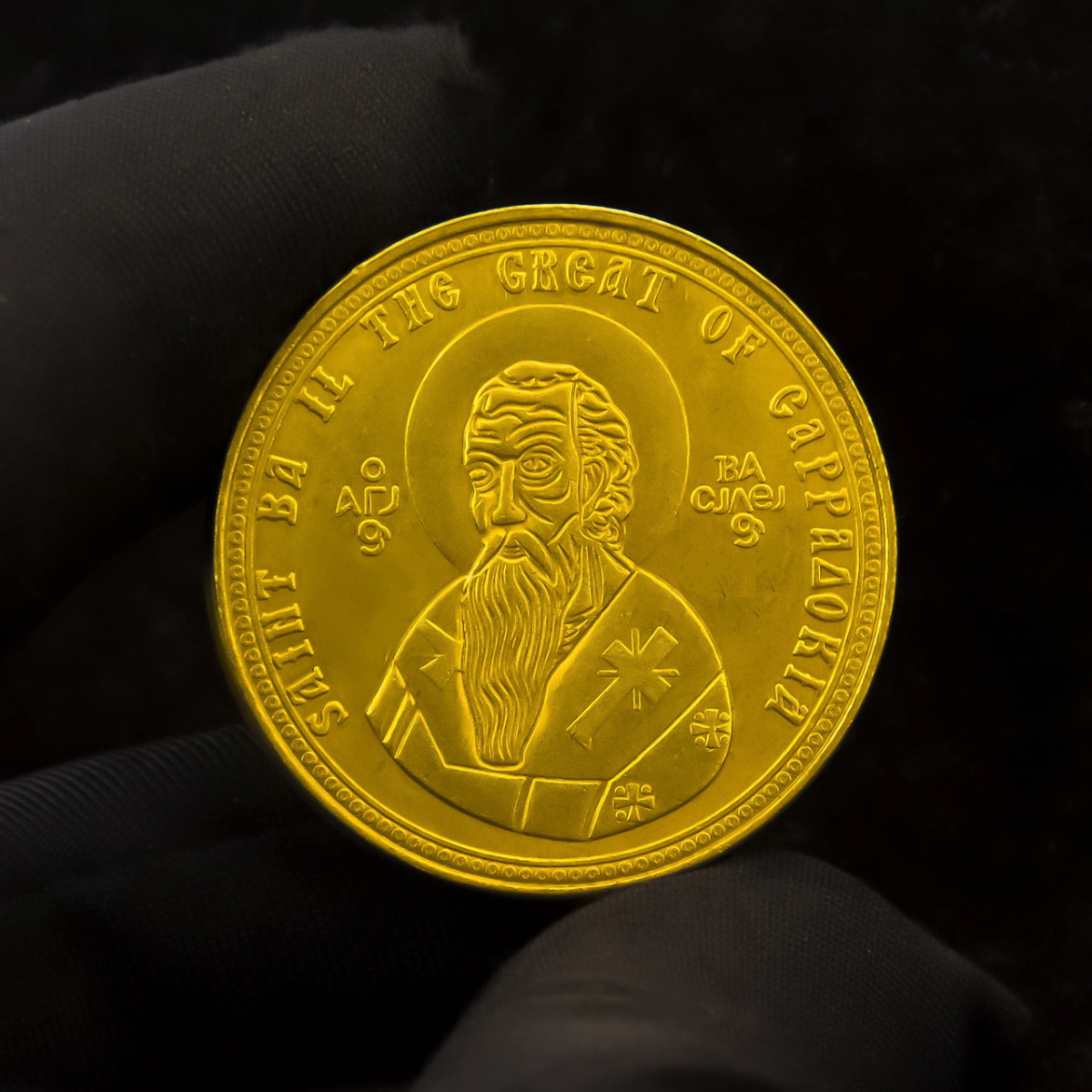 Офіційна золота монета Василопіта, також відома як флорі або жетон, була розроблена та відчеплена батьком Джорджем Л. Пападеасом насамперед для поширення в усьому світі для збереження прекрасної східно-православної традиції, , що полягає в ритуальному розрізанні пирога або хліба Василопіта. Ця монета була нагороджена грецьким православнимрегителем. Будь ласка, обов“язково скористайтеся нашими знижками за кількість, зазначених нижче. Переклад слова «василопіта» буквально означає «торт Святого Василія», на честь цього дбайливогоапеля багато століть тому. Ця традиція відзначає відповідний Новий рік процвітанням, здоров“ям і рейхом і святкується першого дня Нового року.