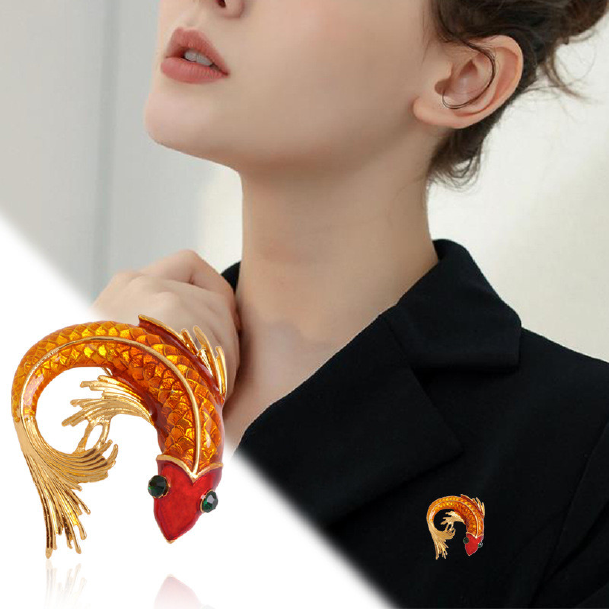 Витончена пін брошка Рибка фен шуй — це яскрава блискуча прикраса, яка не залишить Ваше серце байдужим. Прикраса виготовлена з дрібних кристалів, які гарно переливаються під час світла сонячних променів.