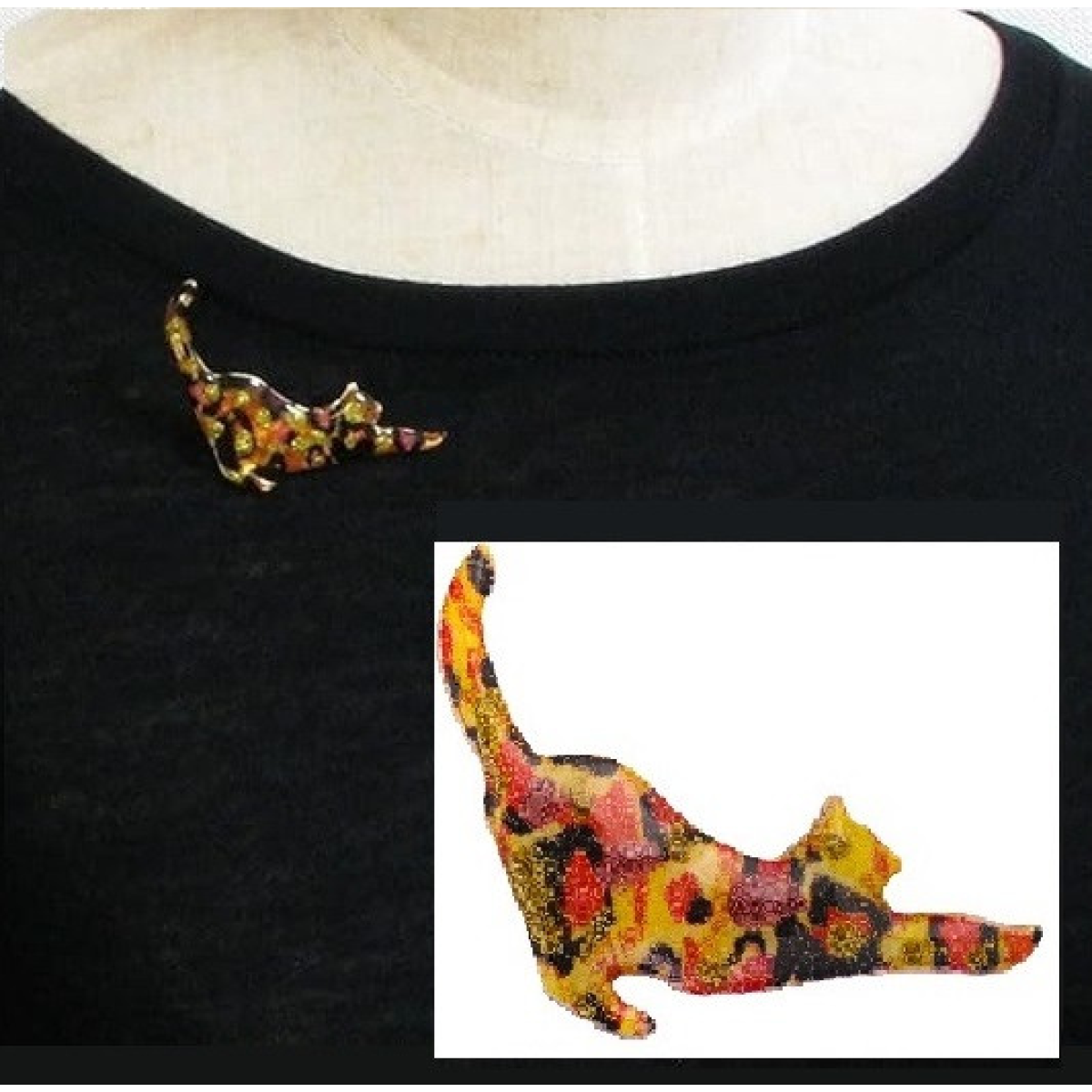Приваблива брошка-шпилька Кішка з яскравими кольорами.
