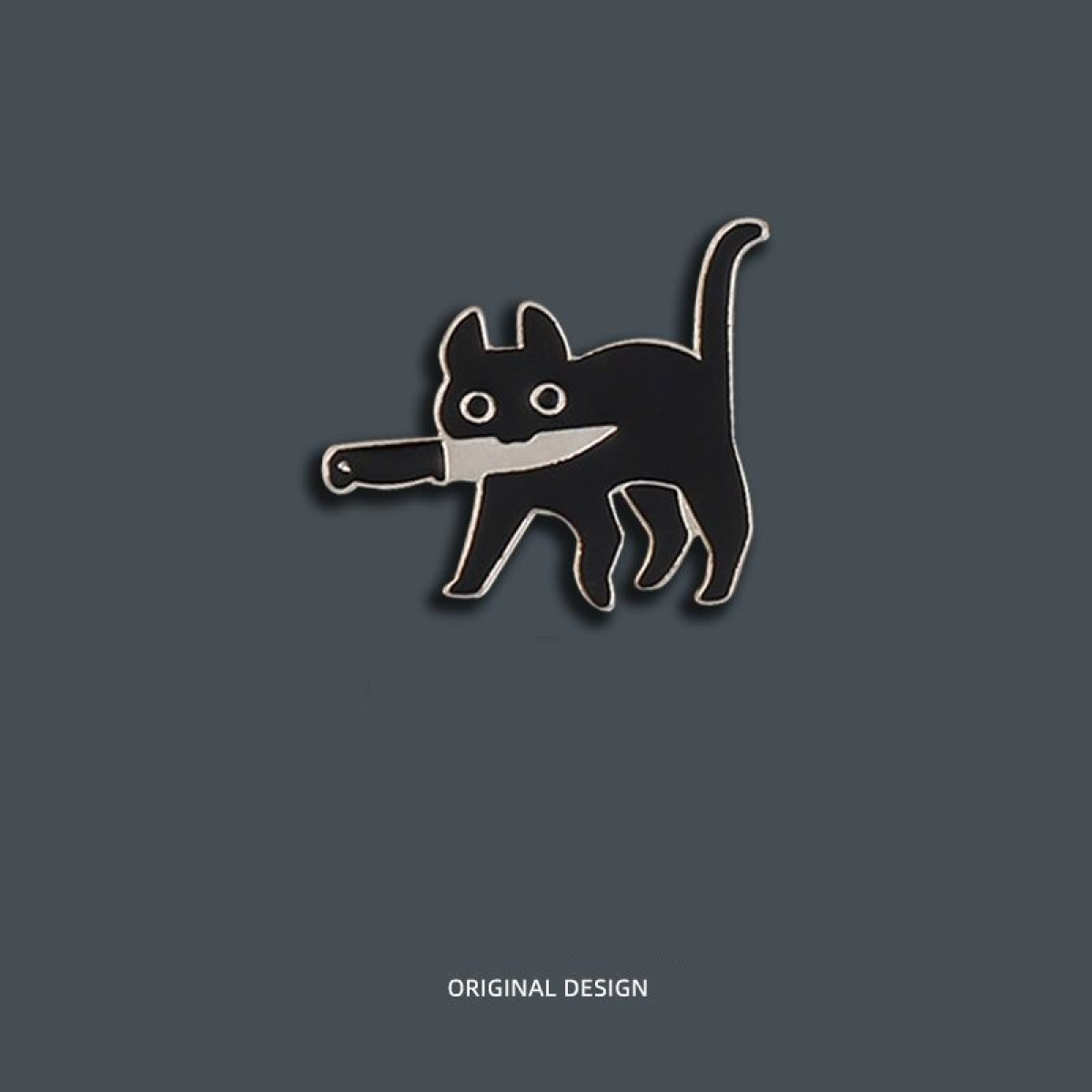 Брошка Чорний кіт з ножем, на рюкзак, пін на куртку 3*3см