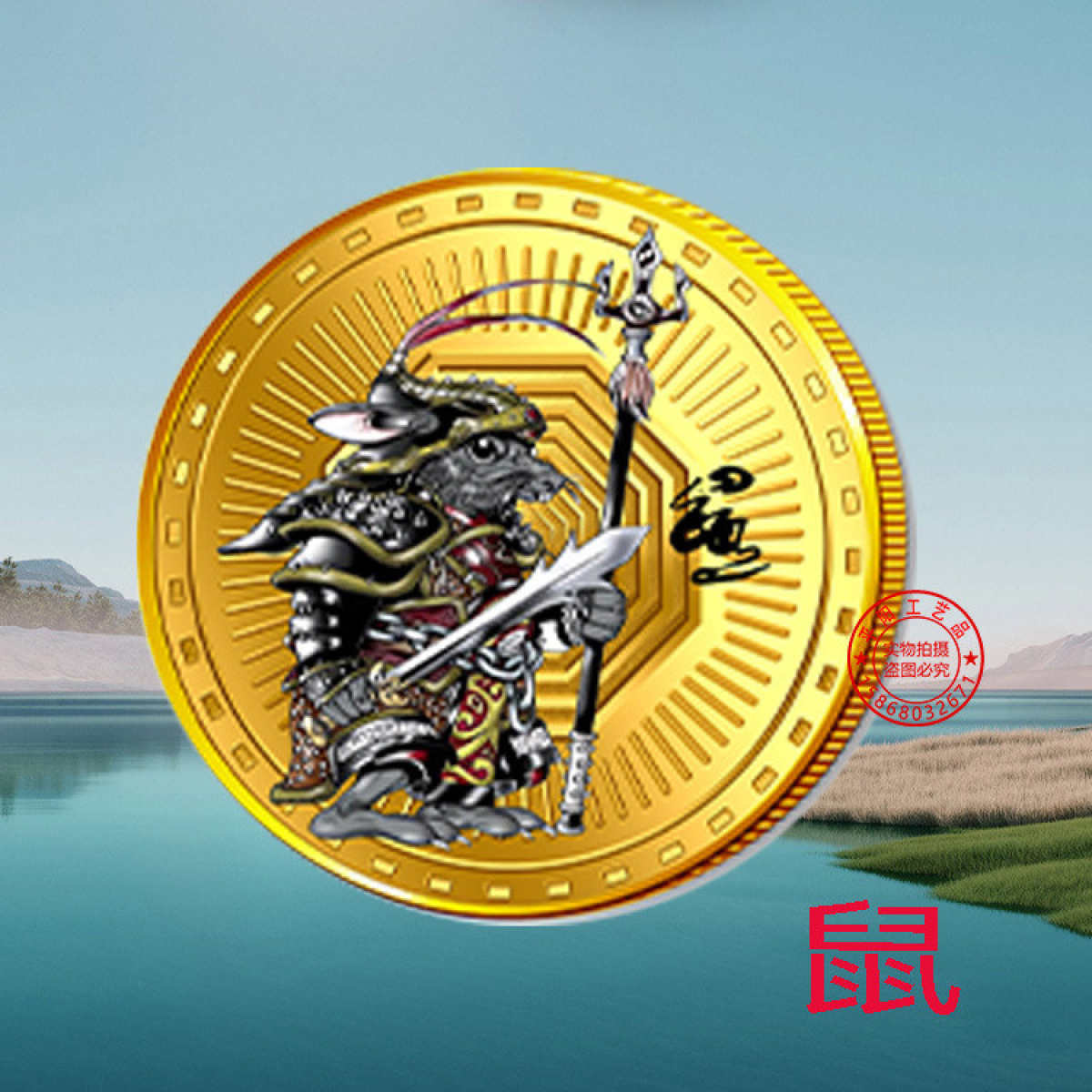 Сувенір монета знак Зодіака “Миша“ стиль Японське аніме. 40*1.5мм Голд (лунний календар)