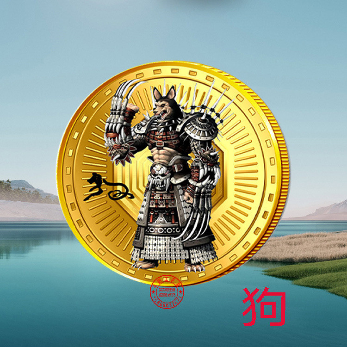 Сувенір монета знак Зодіака “Собака“ стиль Японське Аніме. 40*1.5мм Голд (лунний календар)