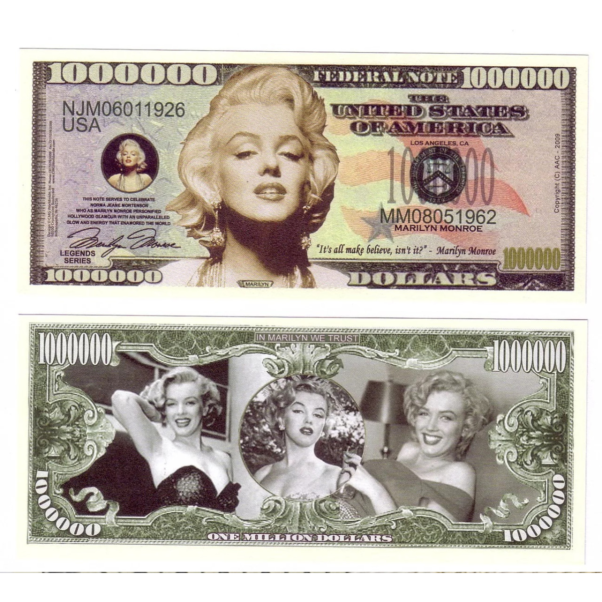 Сувенірна банкнота 1 мільйон доларів США «МЕРИЛІН МОНРО» (водні знаки)