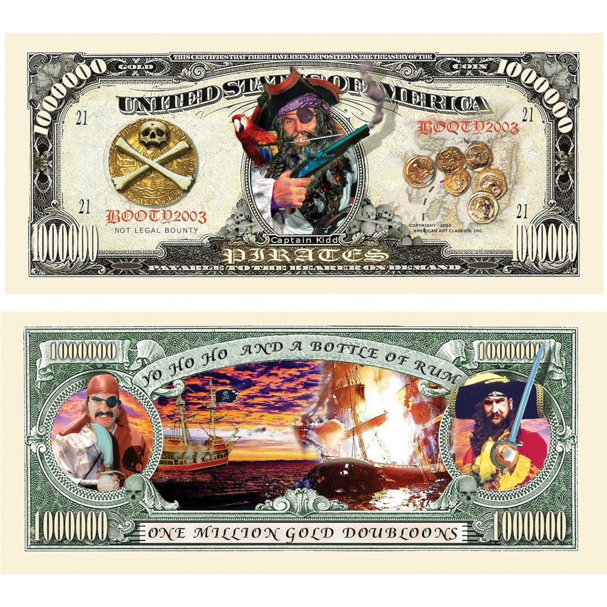Сувенірна кольорова банкнота 1 мільйон дублонів 2003 Капітан Кідд