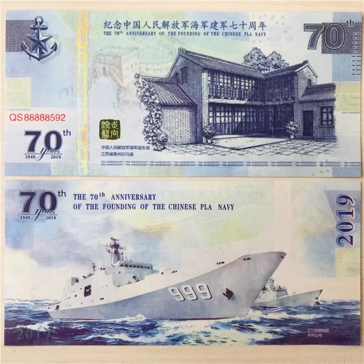 Тестова банкнота Китаю — 1949-2019 — 70 років заснування ВВС Китаю — корабель