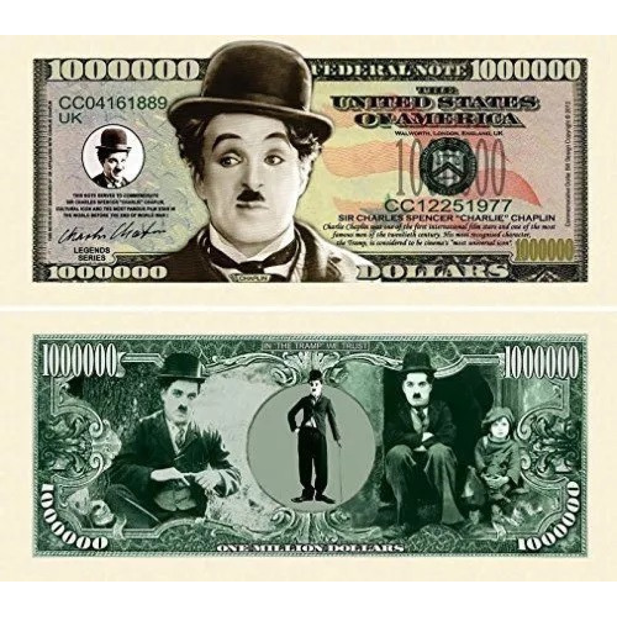 • Сувенірна банкнота 1 мільйон доларів США 1997г “сер Чарльз Спенсер, Чарлі Чаплін,“