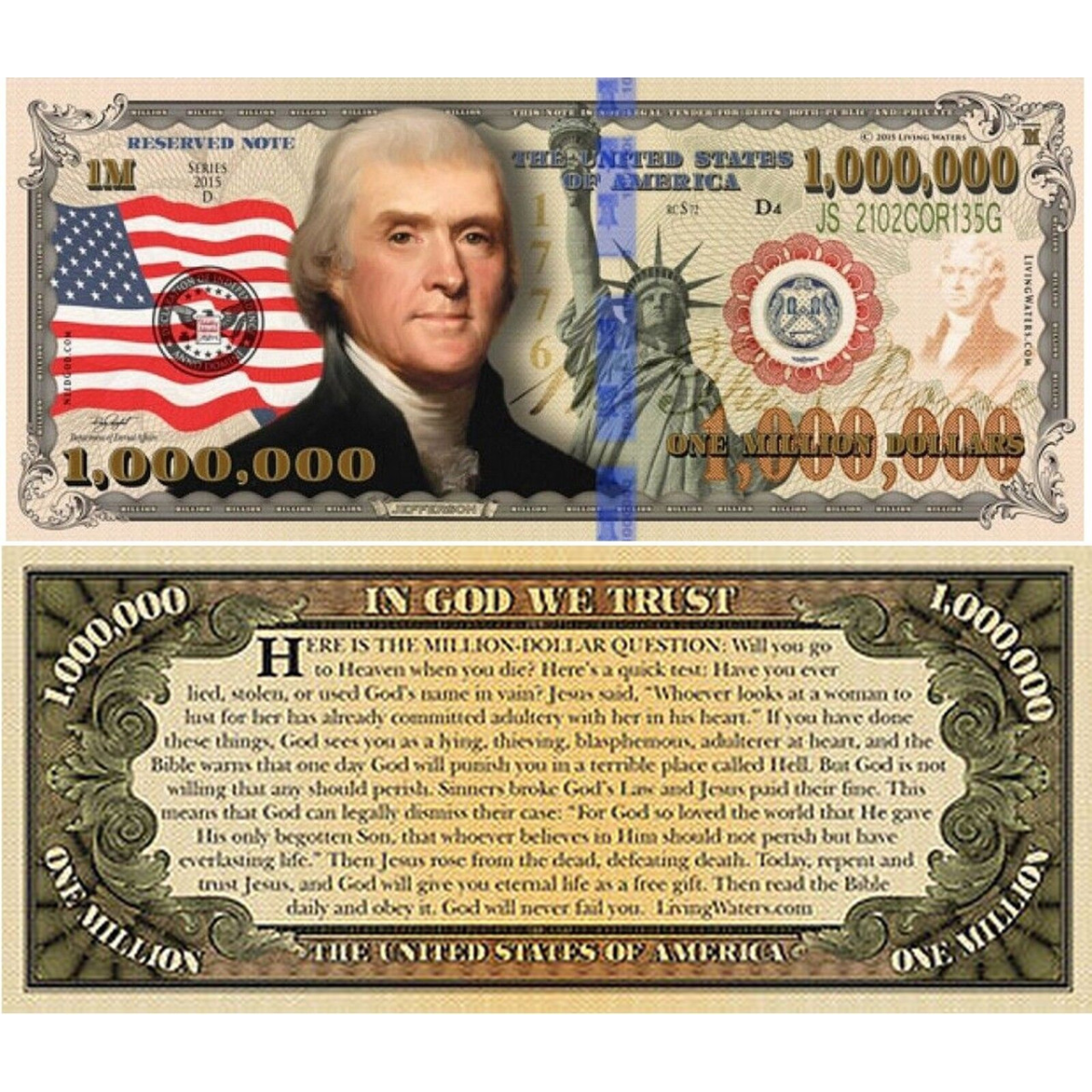 Зображення являє собою сувенірну купюру номіналом “один мільйон доларів США“.