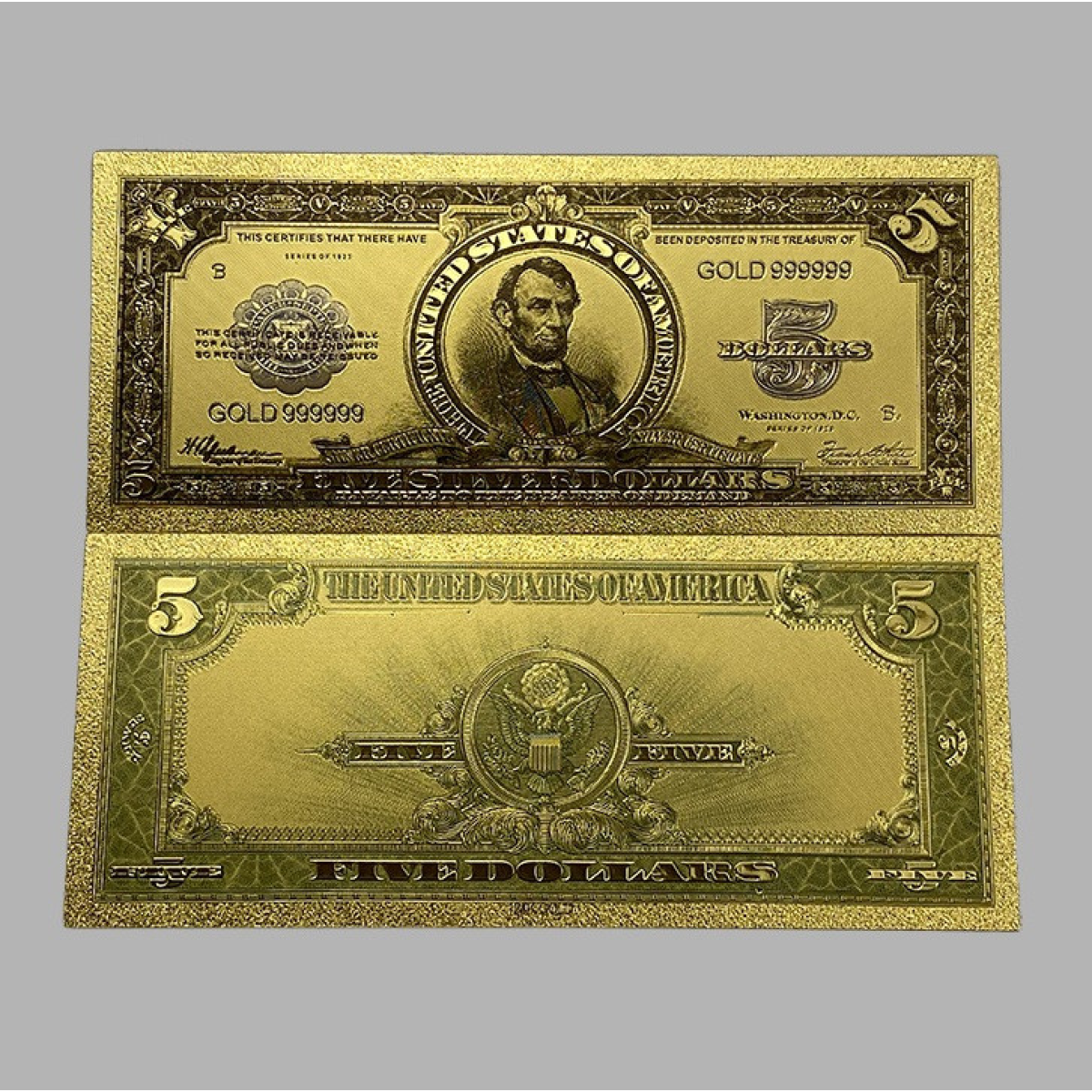 Виготовлено зі справжньої 24-каратної золотої фольги, що надає кожній американській купюрі з цієї фольги розкішного та блискучого вигляду. Це всього лише іграшка, що не має жодної цінності та не підлягає поширенню.