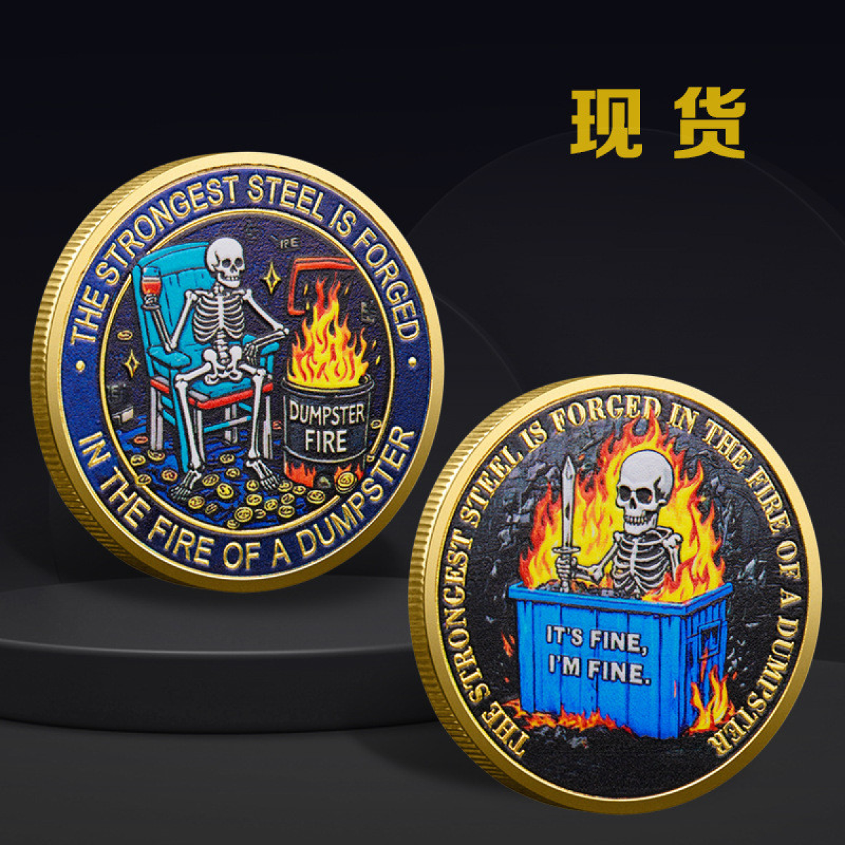 Монета “Dumpster Fire“ — це пам“ятна або сувенірна монета, яка часто використовується як “монет виклику“ (challenge coin), що символізує стійкість і здатність справлятися з хаотичними або складними ситуаціями. Опис монети: Дизайн: На монеті зображений сміттєвий контейнер (dumpster) у вогні, що є гумористичною метафорою хаотичної або фатальної ситуації. Написи: На одній стороні часто трапляється фраза “THE STRONGEST STEEL IS FORGED IN THE FIRE OF A DUMPSTER“ (Сама міцна сталь загартовується у вогні сміттєвого контейнера), що підкреслює ідею, що труднощі роблять нас сильнішими. На іншому боці може бути зображення скелета, що сидить у контейнері або поруч із ним, з написом “IT“S FINE, I“M FINE“. (Все гаразд, я впорядкую), що додає гумору та відбиває здатність зберігати спокій у adversity. Призначення: Використовується як мотиваційний сувенір, подарунок для тих, хто пережив важкі часи, або як символ визнання в робочих колективах, особливо в стресових умовах. Пожежа в сміттєвому контейнері: Скелет сидить у сміттєвому контейнері, оточений ревучим полум“ям. Скелет байдужо підіймає обидві руки та каже: «ВСЕ ХОРОШО» і «УМІШНО ХОРОШО, ВСЕ ХОРОШО». З гумором підкреслюється, як навіть серед хаосу та невдач можна знайти сили відновитися й рухатися вперед. Він передає, що життєвий хаос не визначає нас; головне — те, як ми вирішуємо з ним стикатися й реагувати на нього. Надихальний зворотний бік монети: зображення скелета з мечем поруч із сміттєвим контейнером, що палає, символізує те, як ми загартовуємося в екстремальних умовах. Грайливий девіз каже: «Саме міцна сталь загартовується у вогні сміттєвого контейнера». Ця концепція передбачає, що в складних ситуаціях люди стають сильнішими та витривалішими. Вона нагадує нам, що навіть у най Гіркіших обставинах у кожного є потенціал розвинути в собі здатність із легкістю зустрічати труднощі та в результаті ставати сильнішими. Монетка — це прекрасна можливість потішити друзів і близьких, подарувавши такий маленький за розміром, але вагомий за значенням подаруночок. Для цієї штучки завжди знайдеться місце у вашій кишені або гаманці. Висока якість сувенірне мистецтво та колекційні, бізнес-подарунок прикраса свята, подарунок Ідеально підходить для дому колекційний подарунок для офісу Матеріал: цинковий сплав, покриття Діаметр: 4 см Товщина: 0.3 см Колір: як на фото Кількість1 шт. У зв“язку з відмінністю між різними моніторами картинка може не відбивати Актуальний колір виробу. Завдяки!