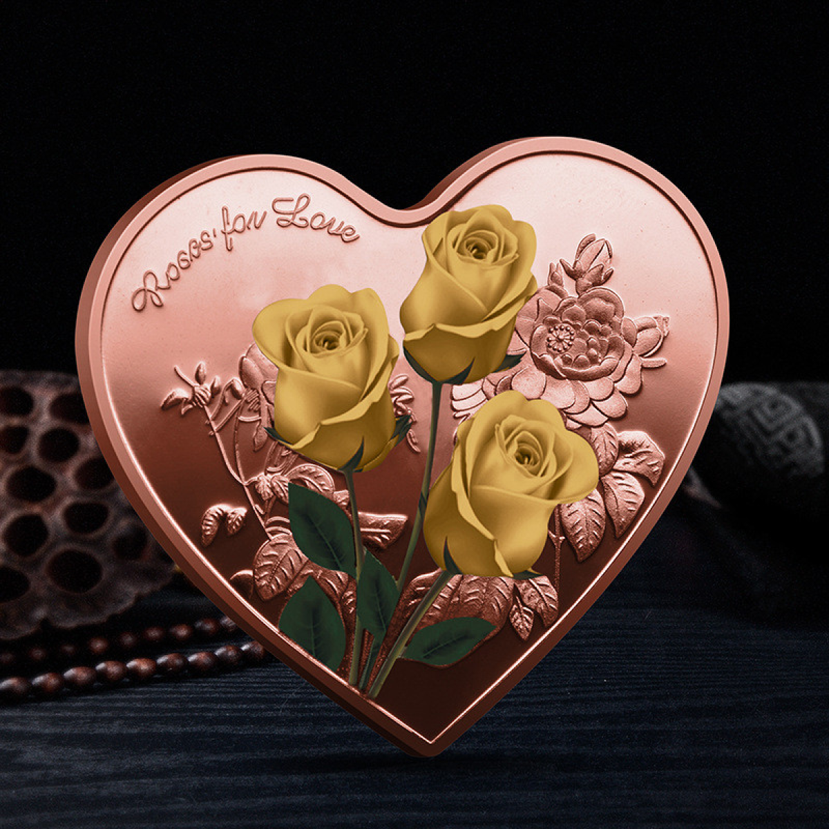 Монета сувенір “Я люблю тебе“ у формі Серця з жовтими трояндами, закоханим, на весілля, мідна