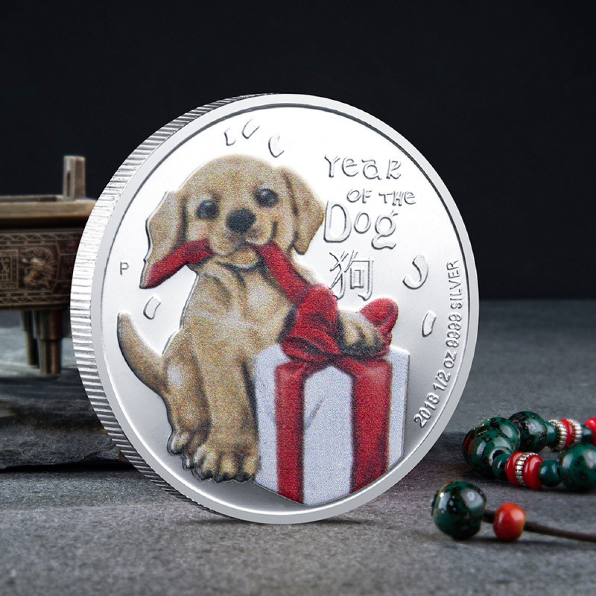На аверсі зображене цуценя, що тримає в зубах стрічку від подарунка. Написи на монеті містять “YEAR OF THE DOG“, а також китайський кантаж “狗“, що означає “собака“. Це вказує на те, що монета випущена у 2016 році
