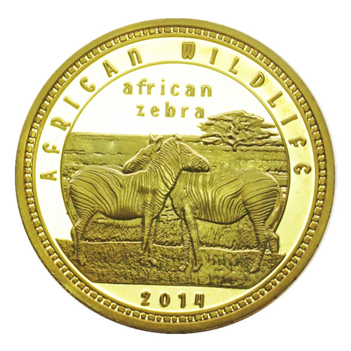 Сувенір позолочена монета “Зебра“ серії африканські тварини 1000 Квача 2014г, (Республіка core)