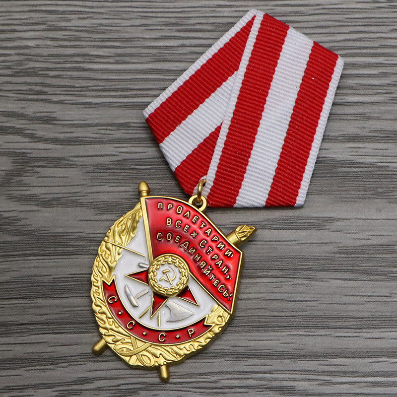 Отерден Красного Знамена (орден «Кра́сне знамениction — один із вищих орденів СРСР. Перший радянський орден. Був встановлений для нагородження за особливу хоробрість, самовідданість і мужність, виявлені під час захисту соціалістичного вітчизни. Декретом ВЦІК від 16 вересня 1918 року був встановлений орден РСФСР “Червоне Знаменя“, а після утворення Союзу Соціалістичних Республіка, Постановою ЦИК СРСР від 1 серпня 1924 року був встановлений орден Червоного Знамени СРСР. Статут ордена був затверджений Постановою Презідиуму ЦІК від 11 січня 1932 року, надалі в нього входили доповнення й зміни Вказами Президіуму Найвищого Ради СРСР від 19 червня 1943 року та від 16 грудня 1947 року. Вказівкою Презідіуму Найвищої Ради СРСР від 28 березня 1980 року був затверджений статут ордена в новій редакції. Цвет: пофарбована заготовка зі сплаву Розмір висота — 45 мм ширина — 35 мм, Матеріал і процес: точкова фарба зі сплаву Паковання: пакет із пухирчастої плівки Особливості сувеніра: Висока якість матеріалів. Пам“ятна монета — це колекційний об“єкт, який має значення для шанувальників колекціонування. Виготовлений із покритого сплаву, він вирізняється високою інтенсивністю й міцністю, зручний для зберігання. Чудово підходить для мистецтва, колекції, подарунків, пам“ятних заходів тощо. Примітка: 1. Допускається похибка 1-3 см через ручне вимірювання. 2. У зв“язку з різною конфігурацією різних моніторів зображення не зображає фактичний колір товару. Будь ласка, переконайтеся, що ви не проти, перш ніж зробити ставку.