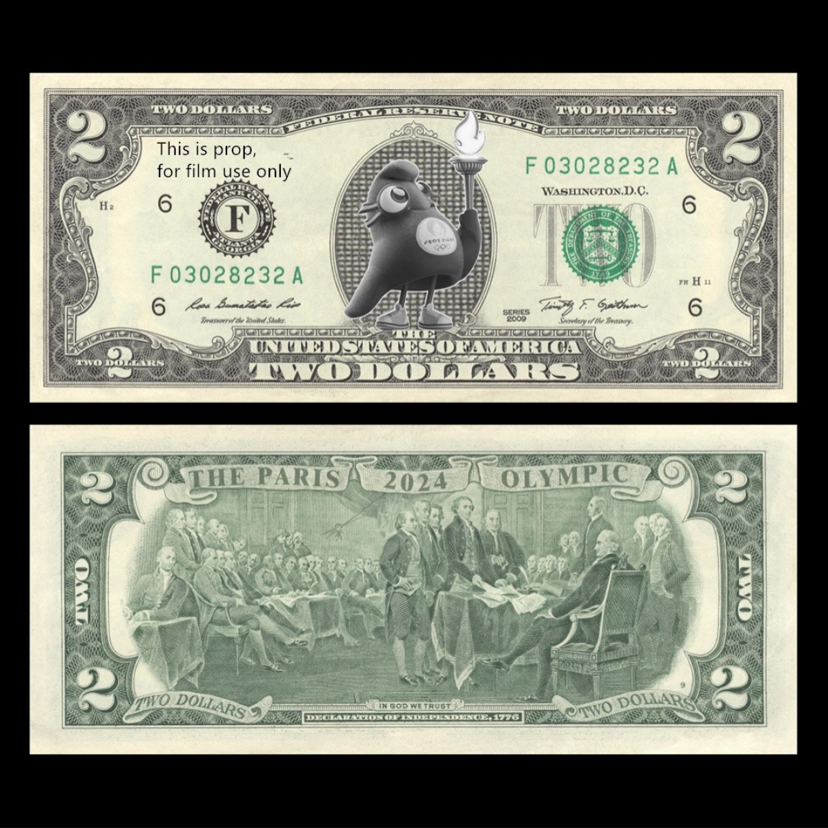 Сувенірна банкнота 2 міні США 2009 р. “Талісман Олімпійських ігор у Парижі 2024 г “. сувенір до колекції.