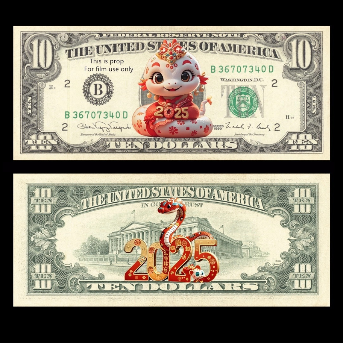 Сувенірна банкнота 10 доларів США 1990г “ Рік Змії 2025“. сувенір у колекцію.