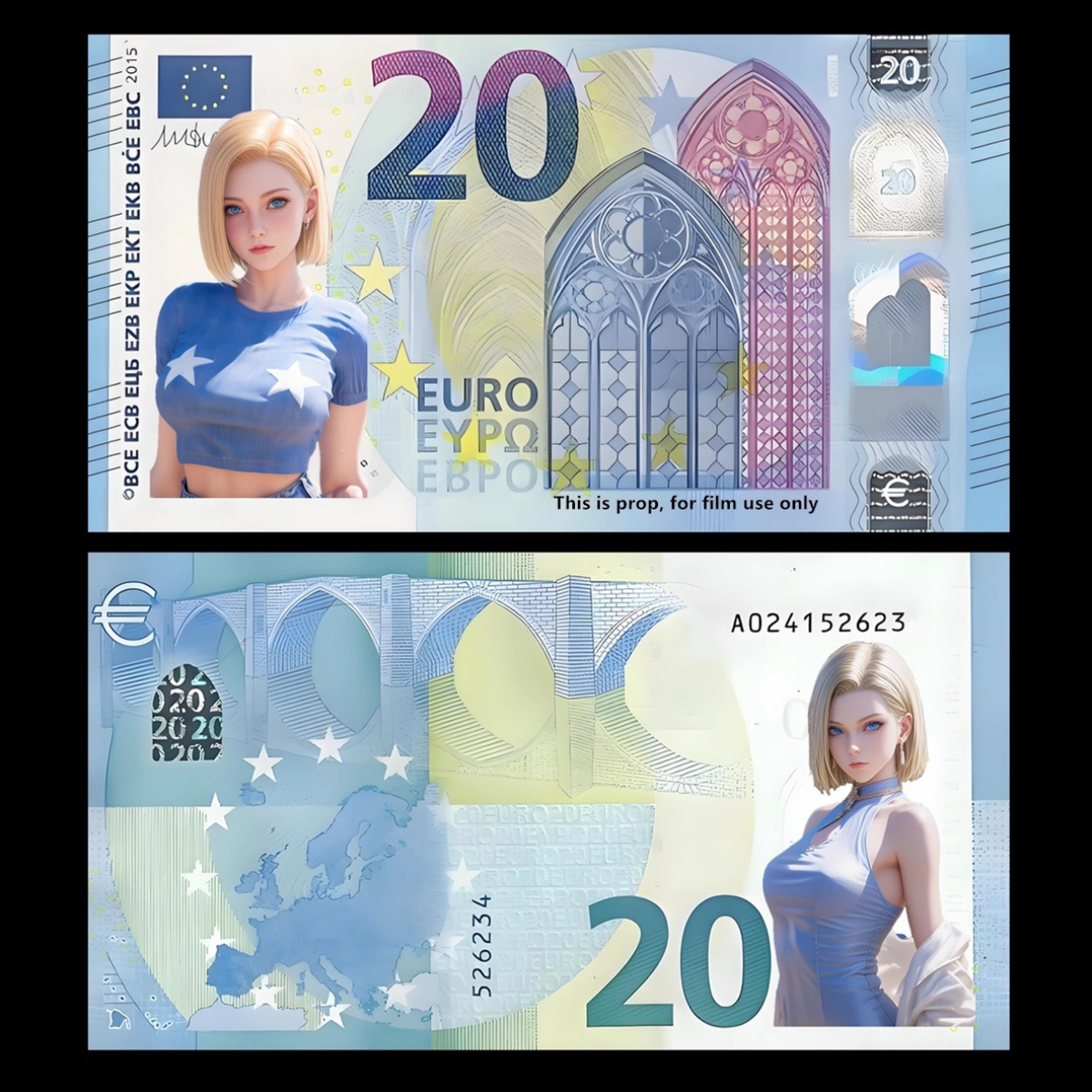 Сувенірна модифікована банкнота 20 Євро аніме “ Андроїда 18“. сувенір у колекцію. аніме “Dragon Ball Z“