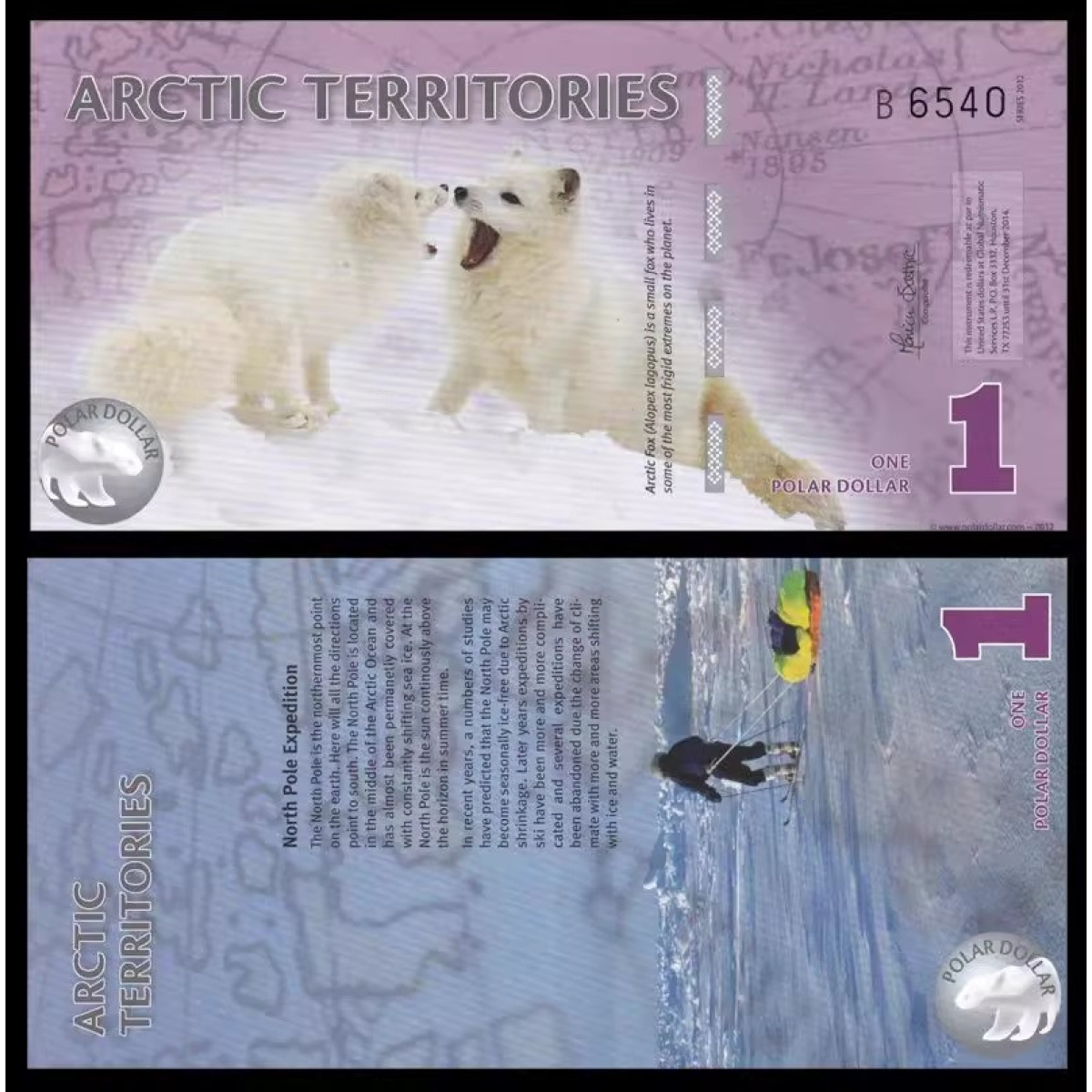 Зображення являє собою банкноту “Полярний долар“ номіналом 1 долар, випущену для “Арктичних територій“. Банкнота не є офіційною валютою, а швидше сувеніром або колекційним предметом.