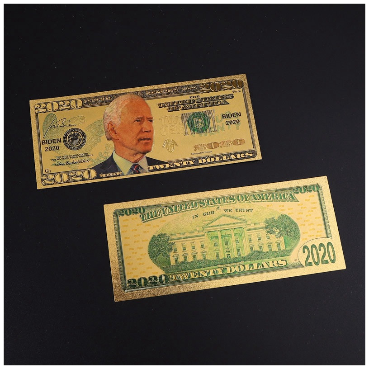 Золота колекційна банкнота 20 доларів США 2020г Джо Байден. (золота фольга)