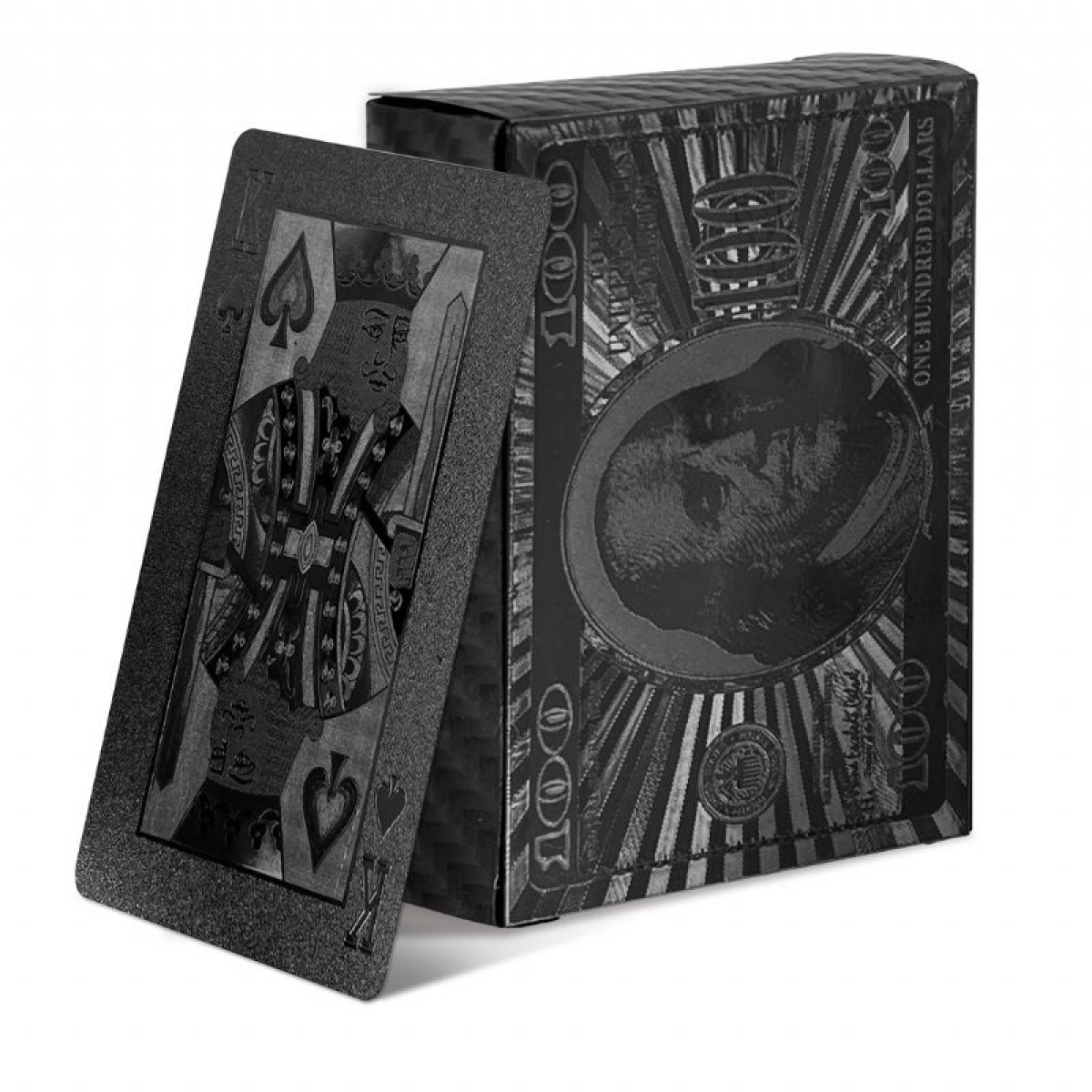 Гральні картки DUKE з чорною фольгою повністю відрізняються від інших звичайних карток, вони зроблені зі срібної фольги, блискучі та ніжні. HD-друк, зробіть його яскравим і чітким, має привабливий та привабливий вигляд. Малюнок банкнот із чорною блискучою фольгою нанесений на коробку та на зворотний бік кожної картки. Високоякісний пластиковий матеріал із алмазною текстурою та має глибоку рельєфну поверхню, що заломлює металеву текстуру.