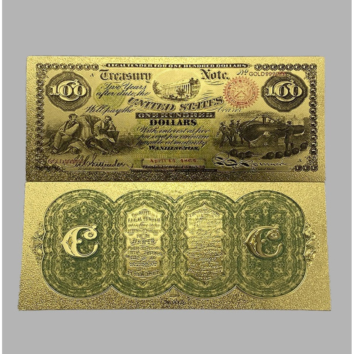 Золота колекційна банкнота Сіребрений Сертифікат 100 доларів США 1864. (золота фольга)