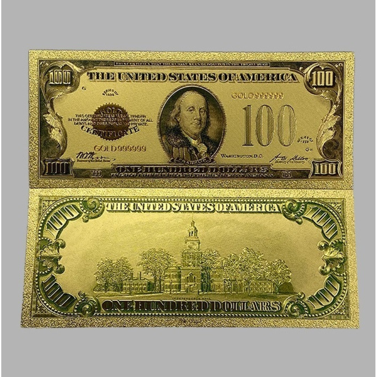 Золота колекційна банкнота Сіребрений Сертифікат 100 доларів США 1928. (золота фольга)