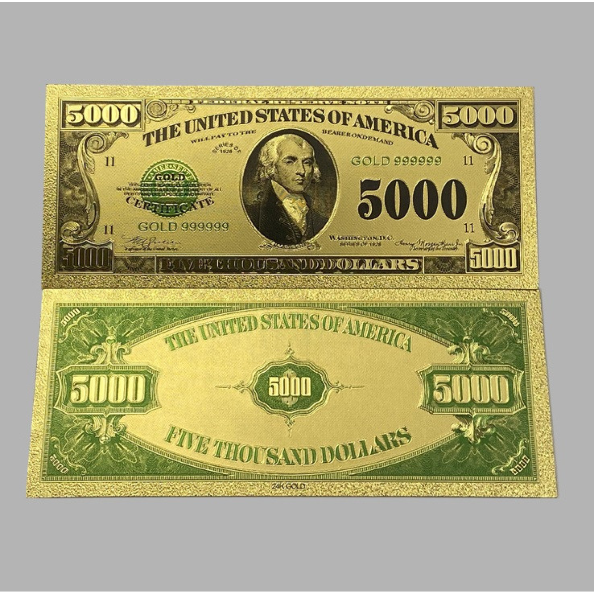 Банкнота номиналом 5000 долларов США 1928 года с изображением Джеймса Мэдисона (президента США) является редкой современной купюрой, которую ценят коллекционеры, и она до сих пор остается законным платежным средством, хотя выпуск прекратился в 1969 году. Купюра имеет портрет Мэдисона на лицевой стороне, а на оборотной стороне изображен мемориал Линкольну, который на самом деле расположен на пятидолларовой банкноте, а не на пятитысячной.