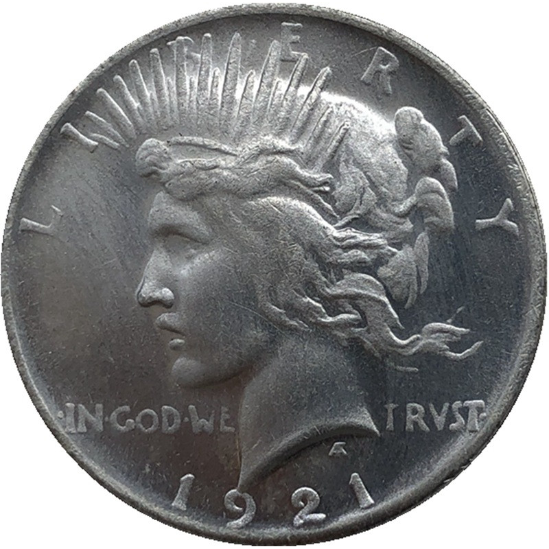 Монета на зображенні — це Срібний Долар світу 1921 року випуску (1921 Peace Silver Dollar).