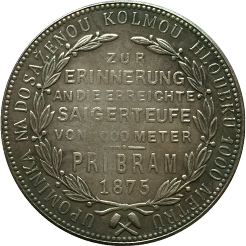 Сувенір пам“ятна монета 1 флорин 1875 рік, до досягнення глибини 1000 метрів на шахті в Пapapрамі