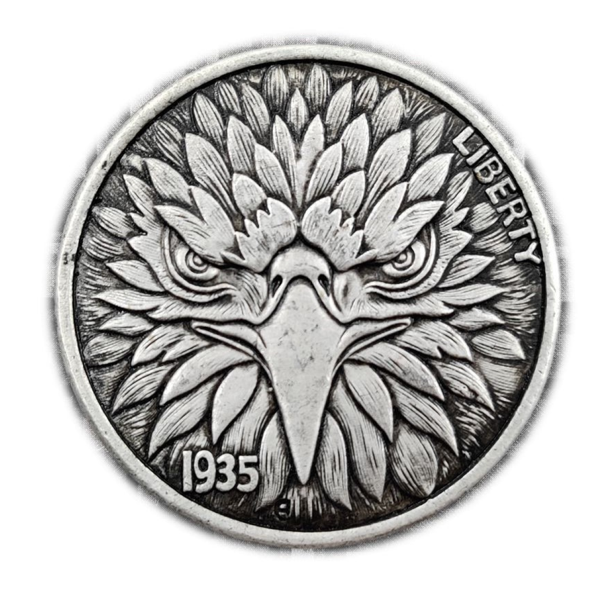 На зображенні представлена монета 1935 року “Liberty Silver Eagle“ (Срібний Орел Свободи).