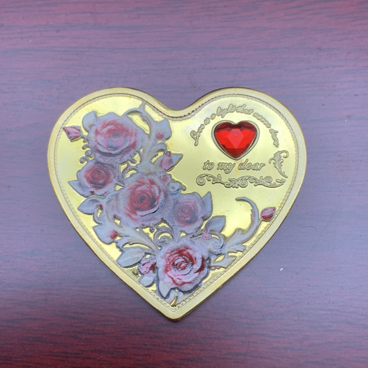 Монета сувенір “Умісдя назавжди“ у формі Серця з квітами та каменем. Голд, закоханим, на весілля, пам“ятні