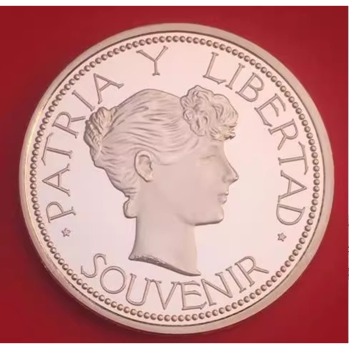 Написи: На монеті є написи “PATRIA Y LIBERTAD“ (Віддальність і Свобода) по верхньому краю і “SOUVENIR“ (Сувенір) по нижньому краю.