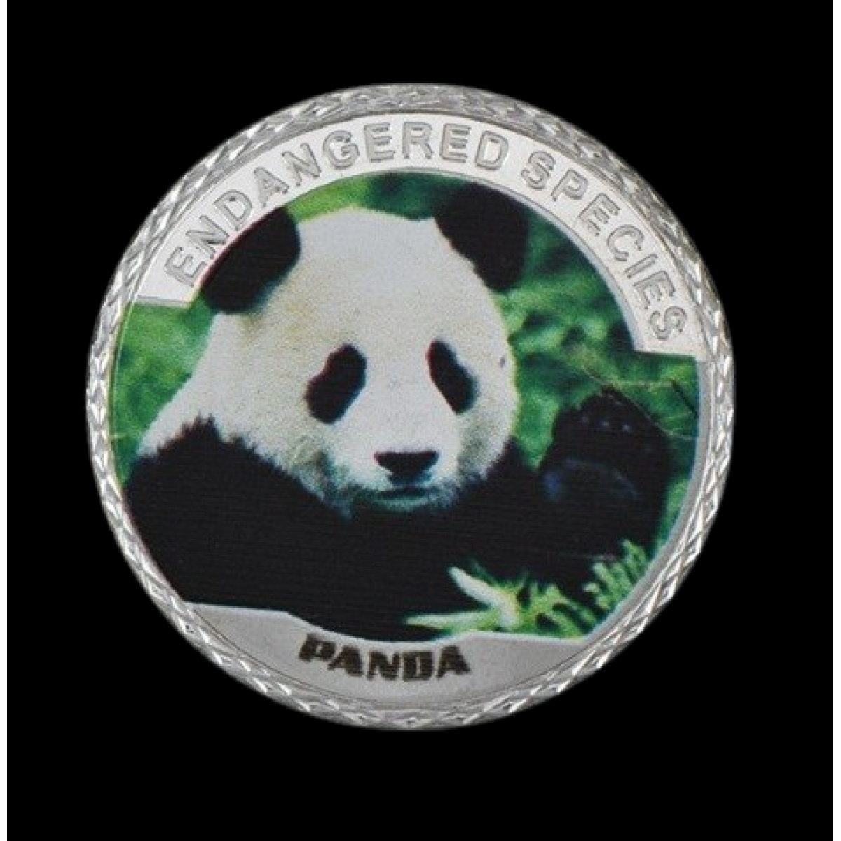 Аверс: На одній стороні монети зображена панда, а також написи “ENDANGERED SPECIES“ (Іскраві різновиди) і “PANDA“ (Панда).