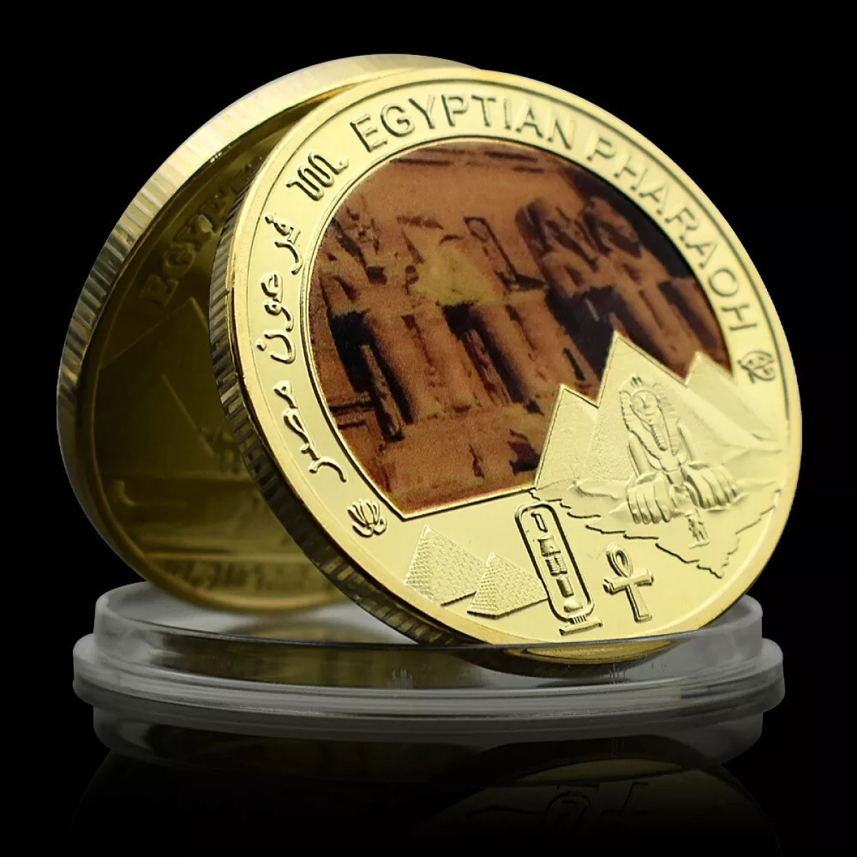 Написи: На монетах є напис “EGYPTIAN PHARAOH“ англійською мовою, а також написи арабською мовою, ймовірно, “| “ (Фараон Єгипту).