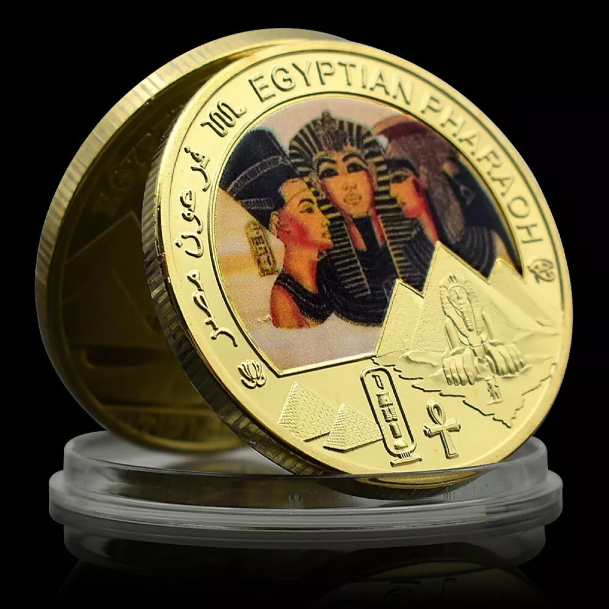 Написи: На монетах є напис “EGYPTIAN PHARAOH“ англійською мовою, а також написи арабською мовою, ймовірно, “| “ (Фараон Єгипту).